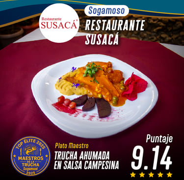 Nuestro restaurante Susacá, con más de 35 años de tradición familiar, fusiona técnicas ancestrales y modernas como el ahumado y sous vide. Rescatamos sabores campesinos e indígenas con ingredientes locales, ofreciendo experiencias auténticas y siendo especialistas en carne de conejo.